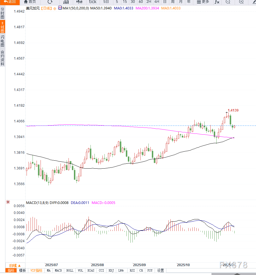 “美国政府关门风险解除,为美元短线提供支撑,但加拿大就业数据意外强劲,可能限制 USD/CAD 的上行空间。” —— 市场外汇策略分析师